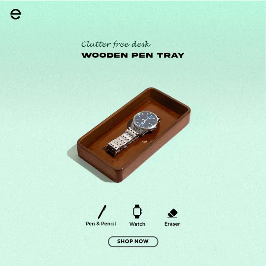 Too many items rolling around? The Wooden Pen Tray keeps pens, watches, and other desk tools neatly in place.